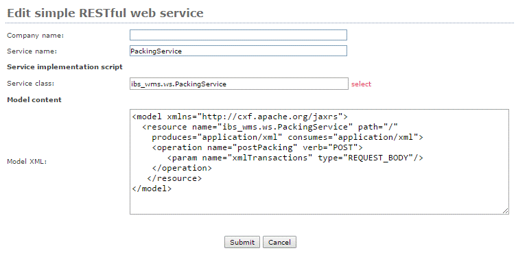 b. Select class ibs_wms.ws.PackingService.