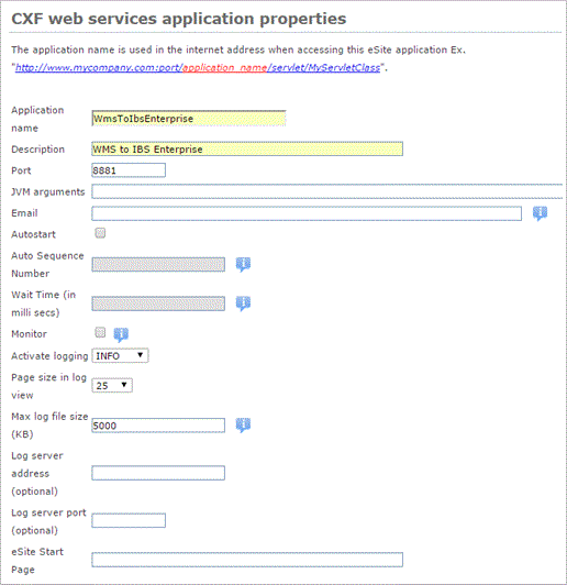 a. Enter Application name WmsToIbsEnterprise.