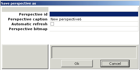 Caution: A modified preloaded perspective which is saved cannot be restored. It is, therefore, recommended that you save it using option Save perspective as to keep the original perspective available. (See step Create a new perspective below for instructions.)