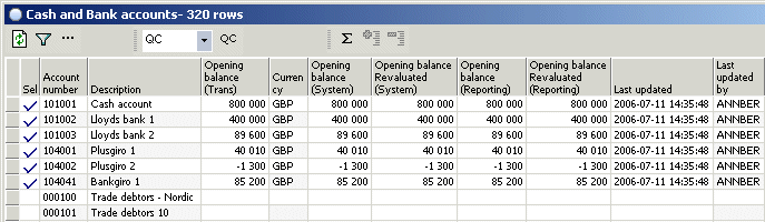 - You access the Cash and bank accounts view with all active main balance accounts defined in IBS Enterprise: