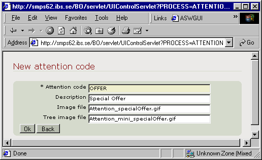 - If you want to attach an attention code to the catalogue tree structure in the left-hand navigator, enter the file name of the tree image file. The image would typically be a thumbnail or a small image.