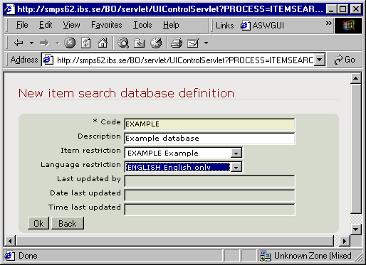 Note: The Default database definition has already been configured (see paragraph Default). - Create Item search database(s).