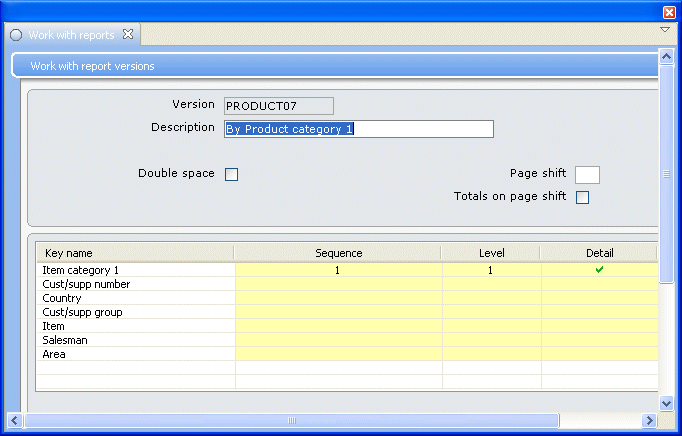 Below the Level column heading, 1 is defined, which means that the first letter in the Item category 1 code will be used to summarise all item categories starting with the same first letter.