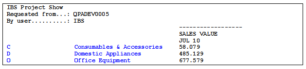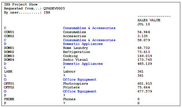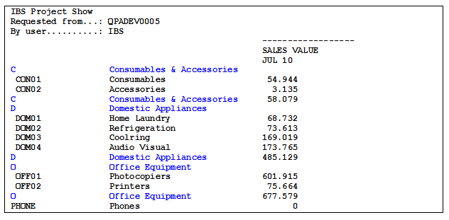 Note: The Item categories OFF and PHONES are printed, since Detail was YES.